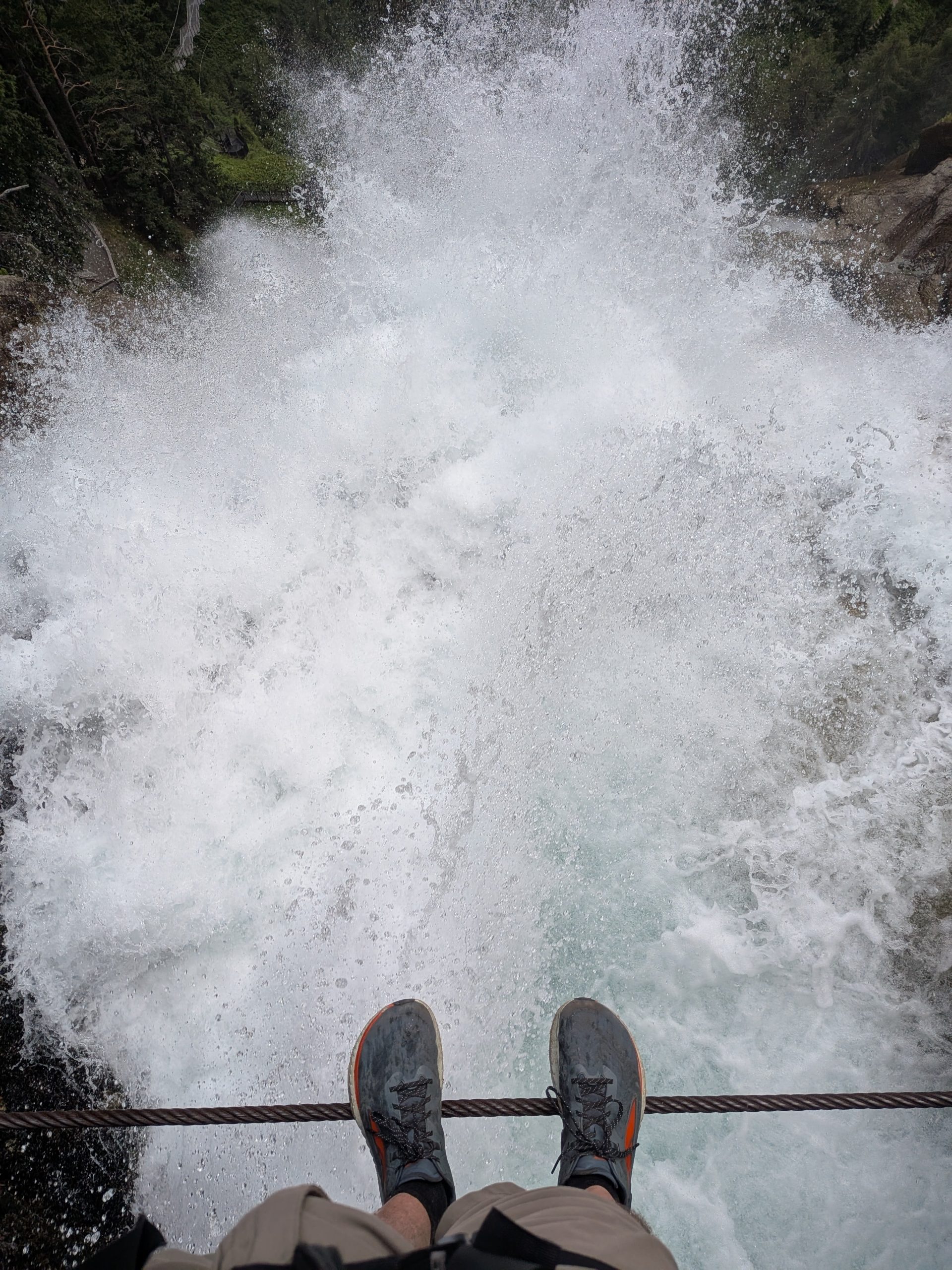 Crossing a raging 500ft tall waterfall (video below…be advised that the sound is deafening).