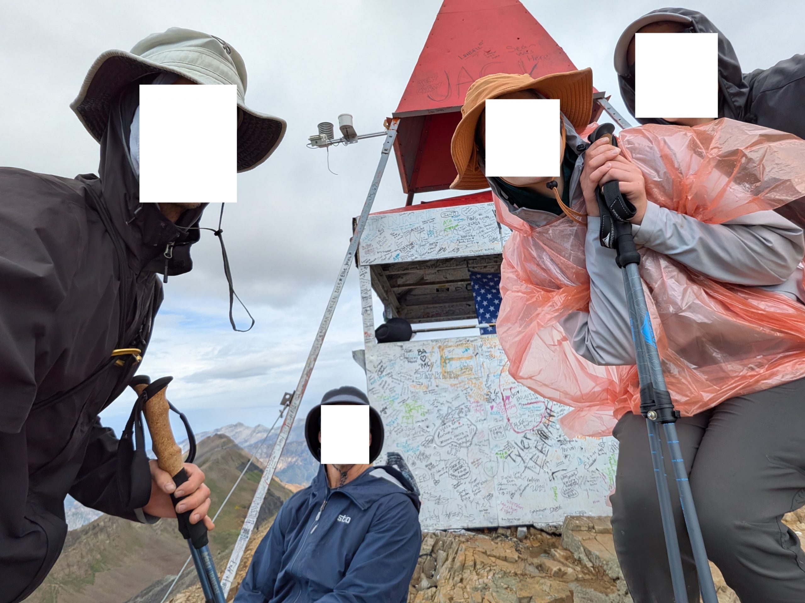 It rained pretty hard on us during most of our 5-hour ascent. It got bad enough that we stopped hiking to take shelter for about an hour under some trees just before crossing the treeline. Serendipitously, the rain cleared as we reached the summit, producing some incredible views.