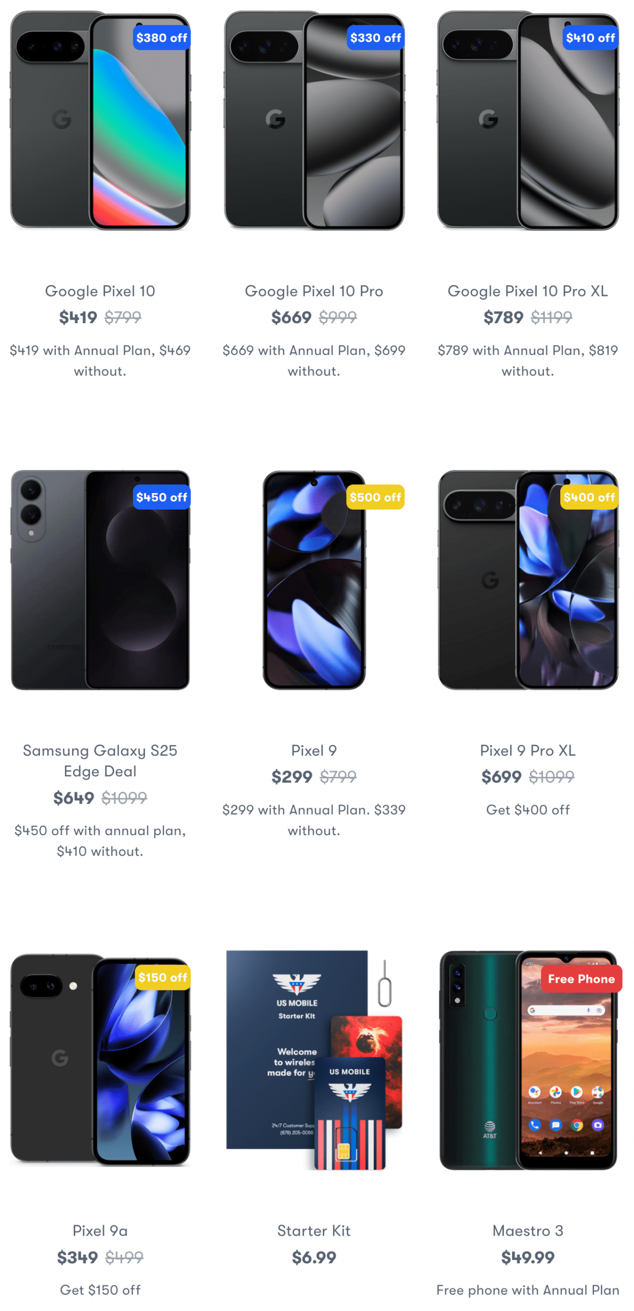 US Mobile offers pretty generous hardware subsidies if you don’t mind “slumming it” with Android/Pixel — I’ll never understand the cult-like disdain Apple/iPhone fanboys have for Android products.