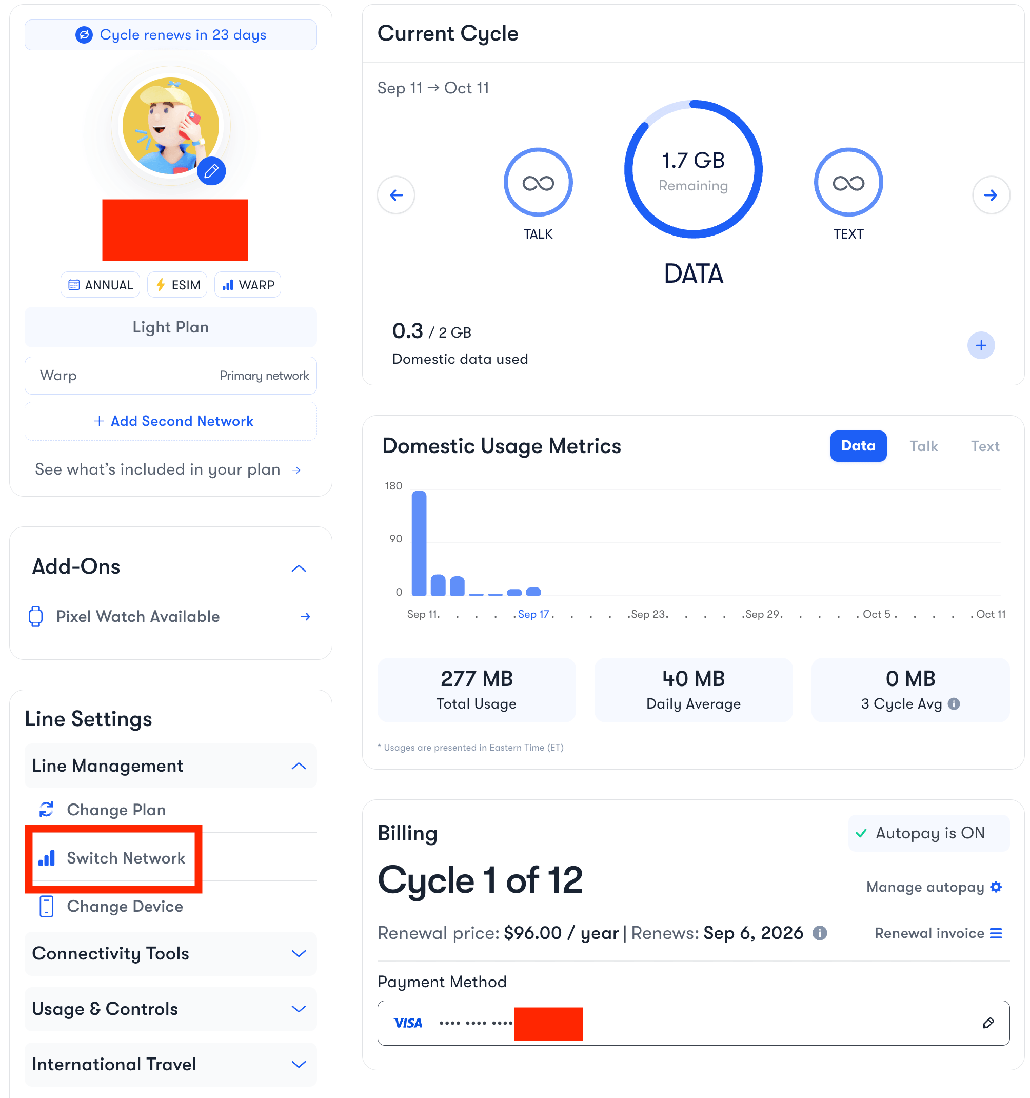 If you want to switch networks (e.g. from Verizon to AT&T), it is trivially easy to do so in the settings (screenshots below).